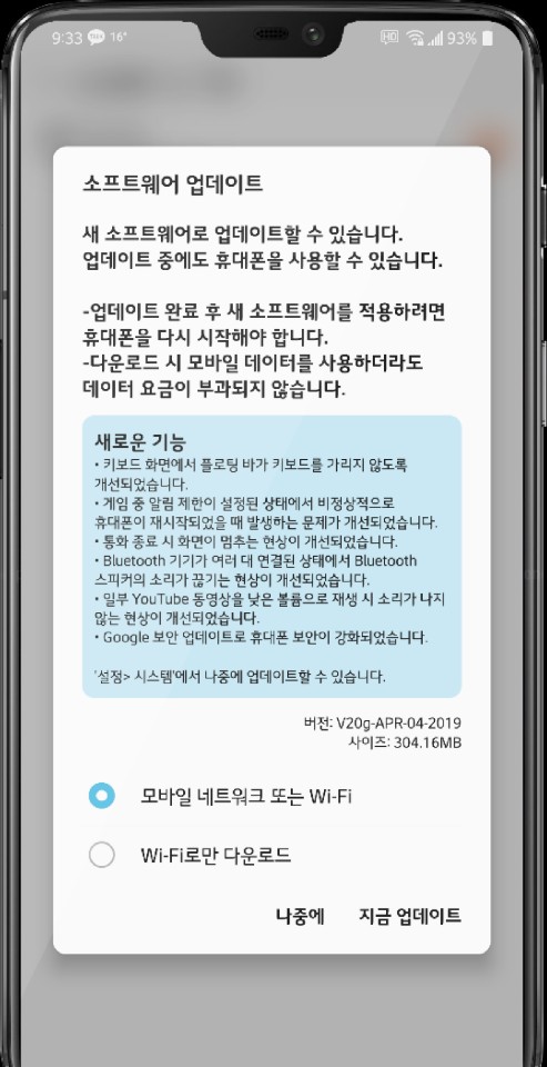 LG전자가 사용자가 피드백한 내용을 2019년 04월 25일 날짜로 SKT, KT, LG U+ 3개의 통신사와 자급제 모델 모두 업데이트 패치가 진행되었습니다.