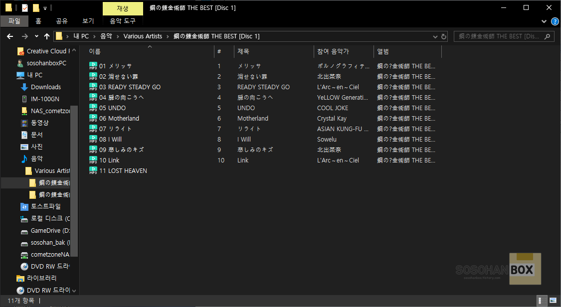 기본값 (C:\사용자\{사용자계정}\음악\앨범명)