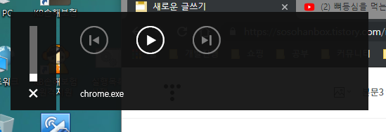 크롬 75.0.3770.80 버전 업데이트 되면서 영상 및 음악을 재생 중이라면 아래와 같이 컨트롤러(미디어조절창)가 뜹니다.