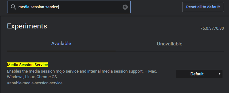 크롬 고급설정으로 진입하는 URL입니다. 검색란에 Media Session Service를 검색하고 Disabled(비활성화)을 해주시고, 크롬을 재시작 해주세요.