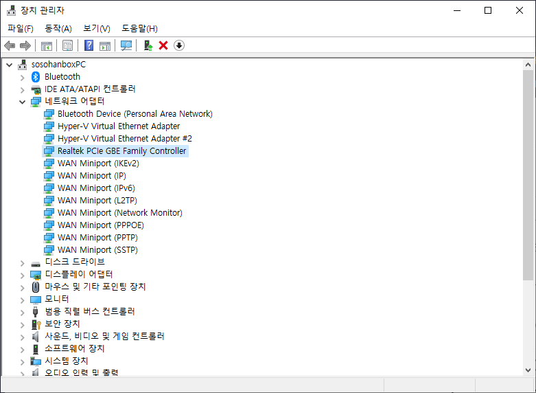 저는 리얼텍 PCIe GBE Family Controllor 칩셋을 사용하고 있어 기준으로 가이드를 제작 되었습니다.