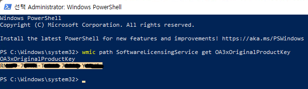 그럼 메인보드에 입력 되어 있는 Windows Licence key가 나옵니다.
