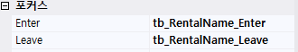 포커스 그룹에 있는 Enter와 Leave에 더블 클릭해서 함수를 자동 생성 해줍니다.